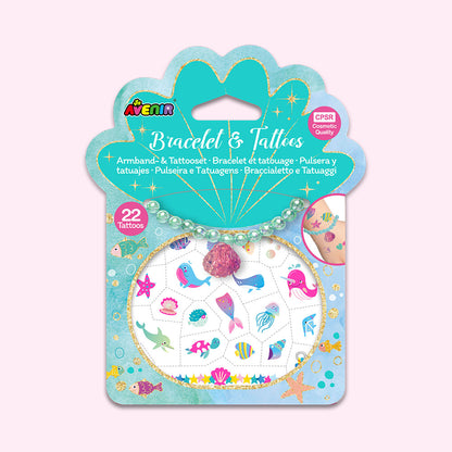 Elevate your style in seconds with the "Fancy Me" Bracelate & Tattoo Stickers set. This kit allows you to create perfectly matching bracelet and tattoo art with ease. Featuring a charming "Sea" themed design, it includes a pearl-liked bracelet coming along with a cute shell charm, and a generous total of 22 tattoo stickers to mix, match your unique OOTD.