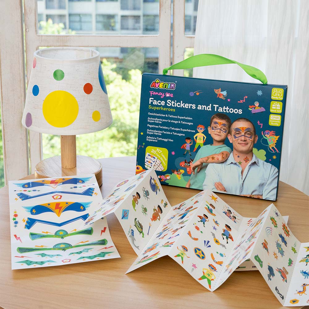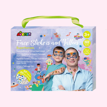 Face Stickers and Tattoos Superheroes Kit is a great fashion activity which brings families together!