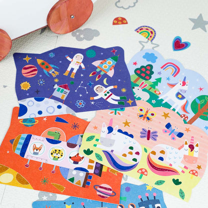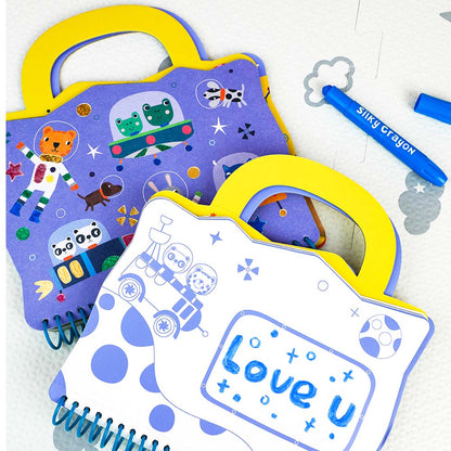 Each book includes 12 outerspace-themed pictures and 10 sparkly foil paper sheets of themed activities, plus a stylus for easily removing the cover paper.