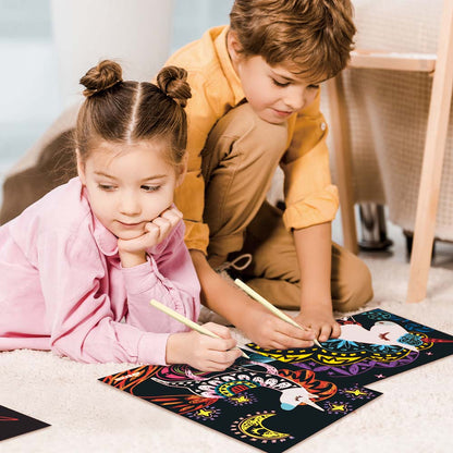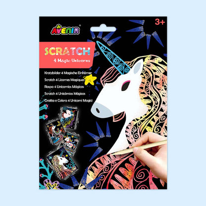 Avenir’s brightly coloured scratch art is perfect for keeping little ones entertained. The set includes 4 scratch sheets and a scratch pen. - High-quality double pack art kit - Scratch to reveal foil pictures—no drawing skills needed, but adding your own patterns is fun too - Comes with boards and scratch pens - Innovative design - Ideal gift for kids