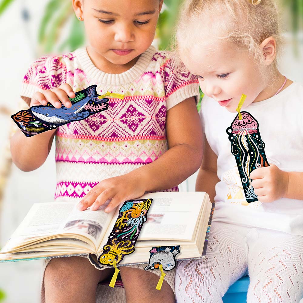 Interactive and Creative Fun: Scratch-off layer lets kids reveal vibrant colors and designs, allowing them to personalize each bookmarks.