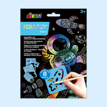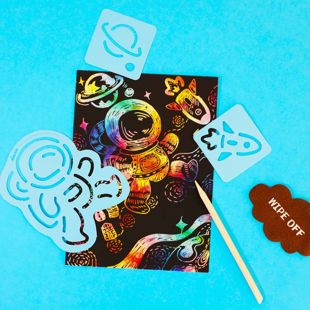 This fun craft kit combines scratch art with stencils to make brilliant outer-space pictures. Scratch some cool space designs using the 8 themed stencils.