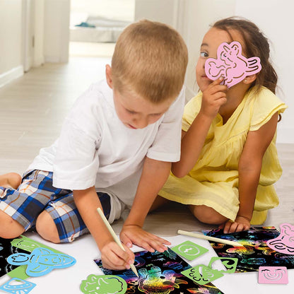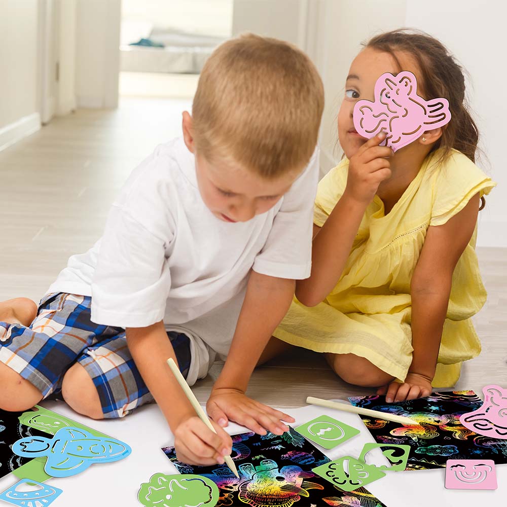 A great easy to do kit for young children. Kids can spend hours with scratch art - just sitting and gently removing the black layer that covers the colours underneath. This makes scratch art a great way to give a child space for calm and concentration while they create something artistic, which stimulates the senses and helps develop hand-eye coordination.